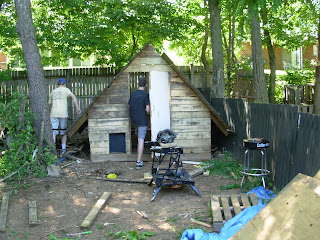 Please pardon the mess known as my backyard as these pics were taken while still in construction phase. The chicken coop was built from pallets & fence panels hubby got for free from his work. The only materials we bought were screws & chicken wire. We already had the boards he used for the door into their run leftover from a previous project & the door to the coop was in our basement not being used. We do plan to put a top on their run to keep predators out & to keep them in when there are no humans out there to monitor. They do get to come out of their run if one of us is out there to keep an eye on them. The city just changed the code so we may be getting 5 more *yay* really looking forward to fresh eggs from humanely kept chickens.